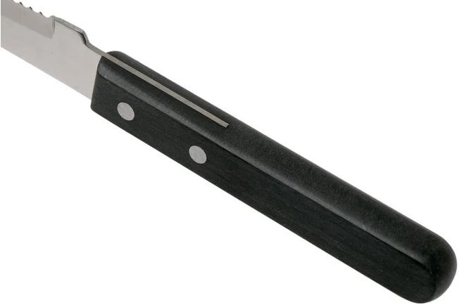 Con estos cuchillos para carne de Amefa podrás disfrutar de los más deliciosos filetes, pizzas y mucho más. Estos seis cuchillos para carne están realzados con un mango negro, lo que les da un aspecto muy resistente y robusto. Los cuchillos son perfectos para disfrutar de un filete, una pizza o platos de barbacoa o parrilla. Es el resultado de la hoja dentada afilada. Con ella se corta la carne en lugar de desgarrarla. Gracias a las estrías, los cuchillos también son excelentes para cortar cortezas duras. También conservan su afilado durante más tiempo que la mayoría de los cuchillos con hoja lisa.