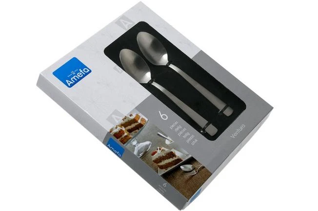 El Amefa Ventura es un modelo fuerte, intemporal y elegante en términos de diseño y una adición absoluta a una mesa moderna. La cubertería está realzada con un acabado mate. Fabricado en níquel cromado, también conocido como acero inoxidable 18/10. Como tal, esta colección es muy resistente a la corrosión (no se mancha fácilmente). Los productos de esta gama son aptos para el lavavajillas.