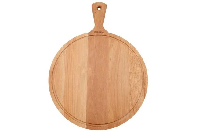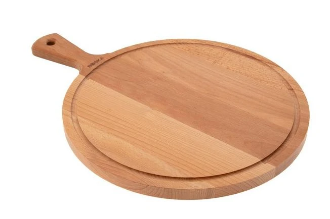 Con esta tabla para servir Boska Amigo puedes servir queso y aperitivos con estilo. Tiene un diámetro de 33 cm. Está hecha de madera de haya, un tipo de madera que no absorbe el sabor ni los olores del queso. Además, también se puede utilizar como tabla de cortar. Una tabla chula y natural para servir el queso. Además, también puedes colgar la tabla de su asa si no la utilizas. Quedará muy bien en tu cocina. No obstante, también puedes guardarla fácilmente en la alacena (si cabe, claro). El asa es un práctico complemento de la tabla. Especialmente con una tabla tan grande y pesada, esto es realmente una adición bienvenida. ¡Servir el delicioso queso será pan comido!