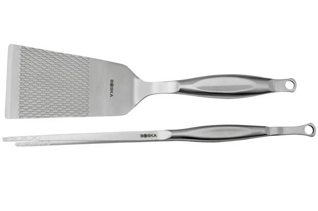 Con este set de herramientas para barbacoa Boska Monaco+ 320045 te robarás el show durante tu próxima barbacoa. Voltear hamburguesas, voltear verduras, ¡serás el maestro de la parrilla! El ojal en el extremo de los mangos facilita colgarlos junto a la barbacoa.
