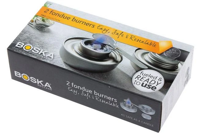 Los quemadores son adecuados para mantener la fondue caliente. La principal ventaja de estos quemadores es que están inmediatamente listos para su uso. Ya no tienes que llenar los soportes. El líquido de combustión durará aproximadamente 5 horas. Si no lo necesitas durante cinco horas, puedes apagarlo con el regulador de llama. Después se deja enfriar el quemador, se retira el regulador de llama y se coloca la tapa encima. Puedes guardar el quemador para la próxima vez. En cuanto el quemador esté vacío, puedes tirarlo. Otra ventaja de este quemador es que es completamente inodoro.