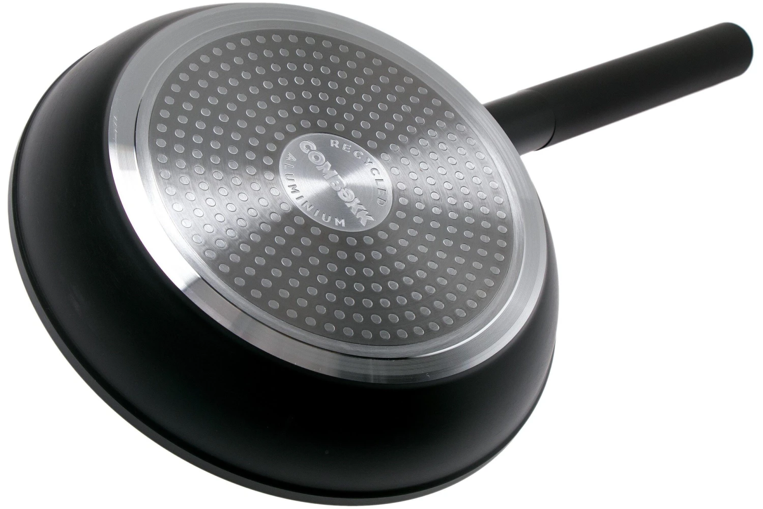 La sartén Alu-X de Combekk es una extraordinaria sartén fabricada en los Países Bajos. Se trata de la primera sartén fabricada en aluminio reciclado con un revestimiento cerámico antiadherente. El llamativo diseño de la sartén también se denomina forma «lionesa»: el borde es más alto que en las sartenes «normales» y está curvado. De este modo, saltear y mezclar los ingredientes será mucho más fácil. Es la sartén perfecta para las comidas de un solo plato. El grueso mango redondo (hecho de nylon 100% reciclado) se siente muy bien en la mano y no se calienta. Como es largo, tu mano no se acercará a la fuente de calor. Esta sartén está mejorada con una base de 24 cm de diámetro (medido desde la parte superior). Por eso, en general, es ideal para preparar platos para dos personas.