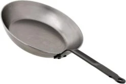 Esta sartén de Buyer Acier Carbone Steel 26 cm es una sartén especial de acero al carbono. Un tipo de acero que no es inoxidable. Eso puede parecer un inconveniente, pero puede funcionar como una ventaja si se utiliza con cuidado. La sartén es sólida y pesada, y no tiene revestimiento antiadherente. Pero no te preocupes: ¡se formará automáticamente a medida que uses la sartén!