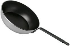 Esta sartén Choc 5 de Buyer de 28 cm parece una sartén, pero con un borde alto y recto. La sartén se utiliza para asar carne, pescado o verduras. Gracias al borde alto y recto, también se pueden chamuscar fácilmente los bordes de la carne. Pero la sartén es más versátil que eso. También se puede utilizar para preparar huevos o patatas. O para calentar las sobras.
