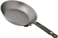 Esta sartén de Buyer Mineral B Element es una sartén especial que tiene un precio muy competitivo. Está hecha de acero al carbono. Un tipo de acero que no es inoxidable. Eso puede parecer un inconveniente, pero puede funcionar como una ventaja si se utiliza con cuidado. La sartén es sólida y pesada. No tiene revestimiento antiadherente, pero se formará uno automáticamente al utilizar la sartén. Debido a que las sartenes no tienen un revestimiento antiadherente, pueden cocinar a temperaturas muy altas. Además, puedes utilizar utensilios de cocina de acero sin preocuparte de dañar el revestimiento antiadherente. Estas sartenes Mineral B Element tienen una fina capa de cera de abeja en la superficie de cocción en el momento de la entrega. Esto reduce significativamente la posibilidad de corrosión en el momento de la entrega. También ayuda a aromatizar la sartén, por lo que la sartén es ligeramente más antiadherente desde el principio, que la serie Acier Carbone normal. Se puede utilizar en todas las placas de cocción. Incluyendo la inducción, e incluso se puede utilizar en el horno. Ten en cuenta que el mango de esta sartén se calienta. Lava esta sartén sólo con agua caliente y un cepillo. El jabón está completamente descartado y el lavavajillas causará un daño irreparable a la sartén. Estas sartenes necesitan un tratamiento especial, pero cuando se usan correctamente, es un placer trabajar con ellas.