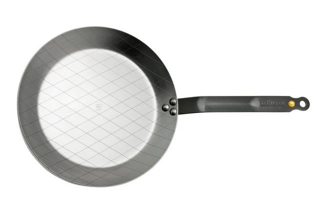 Esta sartén para carne Mineral B Element de Buyer de 28 cm es una gran sartén para carne/sartén para freír a un precio muy razonable. Esta sartén para carne de Buyer tiene un patrón de cuadros que deja hermosas rayas de parrilla en tu carne. Está hecha de acero al carbono. Este tipo de acero no es inoxidable. Eso puede parecer un inconveniente, pero puede funcionar como una ventaja si se utiliza con cuidado. La sartén es sólida y pesada. No tiene revestimiento antiadherente, pero se formará uno automáticamente al utilizar la sartén. Debido a que las sartenes no tienen un revestimiento antiadherente, pueden cocinar a temperaturas muy altas. Además, puedes utilizar utensilios de cocina de acero sin preocuparte de dañar el revestimiento antiadherente. La estructura de la sartén es perfecta para dorar la carne, como resultado se obtiene una carne jugosa y tierna.