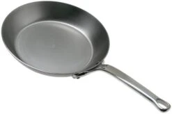 Esta sartén Mineral B Pro Element de Buyer de 24 cm es una sartén especial a un precio muy razonable. Está hecha de acero al carbono. Este tipo de acero no es inoxidable. Eso puede parecer un inconveniente, pero puede funcionar como una ventaja si se utiliza con cuidado. La sartén es sólida y pesada. El largo mango de acero inoxidable no se calienta durante la cocción. No tiene revestimiento antiadherente, pero se formará uno automáticamente al utilizar la sartén. Debido a que las sartenes no tienen un revestimiento antiadherente, pueden cocinar a temperaturas muy altas. Además, puedes utilizar utensilios de cocina de acero sin preocuparte de dañar el revestimiento antiadherente. Estas sartenes Mineral B Pro Element tienen una fina capa de cera de abeja en la superficie de cocción en el momento de la entrega. Esto reduce significativamente la posibilidad de corrosión en el momento de la entrega. También ayuda a sazonar la sartén, y hace que la sartén sea ligeramente más antiadherente que la colección Acier Carbone normal, desde el principio. Es apto para todas las fuentes de calor, incluyendo la inducción y el uso del horno. Lava esta sartén sólo con agua caliente y un cepillo. El jabón está completamente descartado y el lavavajillas causará un daño irreparable a la sartén. Estas sartenes necesitan un tratamiento especial, pero cuando se usan correctamente, es un placer trabajar con ellas.