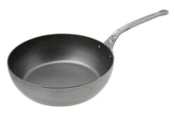 Esta sartén para saltear de Buyer Mineral B Pro Element 28 cm es una sartén especial a un precio muy razonable. Está hecha de acero al carbono, un tipo de acero que no es inoxidable. Esto puede parecer un inconveniente, pero puede funcionar como una ventaja si se utiliza con cuidado. La sartén es sólida y pesada. El largo mango de acero inoxidable no se calienta durante la cocción. No tiene revestimiento antiadherente, pero se formará uno automáticamente al utilizar la sartén. Al no tener este revestimiento, puede soportar temperaturas muy altas. Además, puedes utilizar utensilios de cocina de acero sin preocuparte de dañarlo. Las sartenes Mineral B Element cuentan con una fina capa de cera de abeja en la superficie de cocción en el momento de la entrega, lo que reduce significativamente la posibilidad de corrosión en ese momento. Además, esto hace que la sartén sea ligeramente más resistente a la adherencia desde el principio que la serie Acier Carbone normal. Es apta para todas las fuentes de calor, incluyendo la inducción y el uso del horno. Lava esta sartén solo con agua caliente y un cepillo. Nunca uses jabón o el lavavajillas, esto causará daños irreparables a la sartén. Estas sartenes necesitan un tratamiento especial, pero cuando se usan correctamente, es un placer trabajar con ellas.
