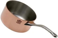 La sartén de cobre de Buyer Prima Matera 18 cm tiene un aspecto elegante y excelentes propiedades de cocción. El cobre es uno de los mejores conductores del calor y lo distribuye excepcionalmente bien. Con razón, las sartenes de cobre son utilizadas por los mejores chefs del mundo desde hace décadas. Controlar la temperatura es más fácil en esta sartén. Esto la hace muy adecuada para hacer salsas o fundir chocolate. El interior de la sartén de cobre es de acero inoxidable, por lo que es más fácil de limpiar. El mango ergonómico también es de acero inoxidable y no se calienta durante la cocción. La sartén es adecuada para todas las fuentes de calor. Esto incluye la inducción, gracias a la base magnetizada. Esta Prima Matera de Buyer es indispensable para todo aficionado a la cocina.