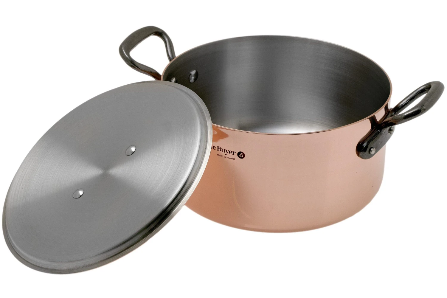 La Olla de cobre De Buyer Prima Tradition, 24 cm es una olla grande y elegante. El borde alto y la tapa de cobre hacen que esta sartén sea ideal para preparar verduras, cocinar carne a fuego lento o hacer una deliciosa sopa.