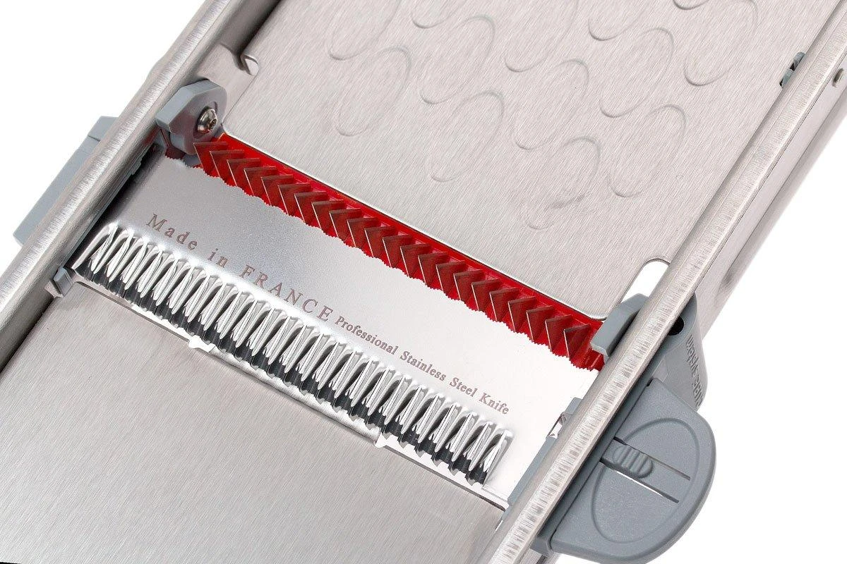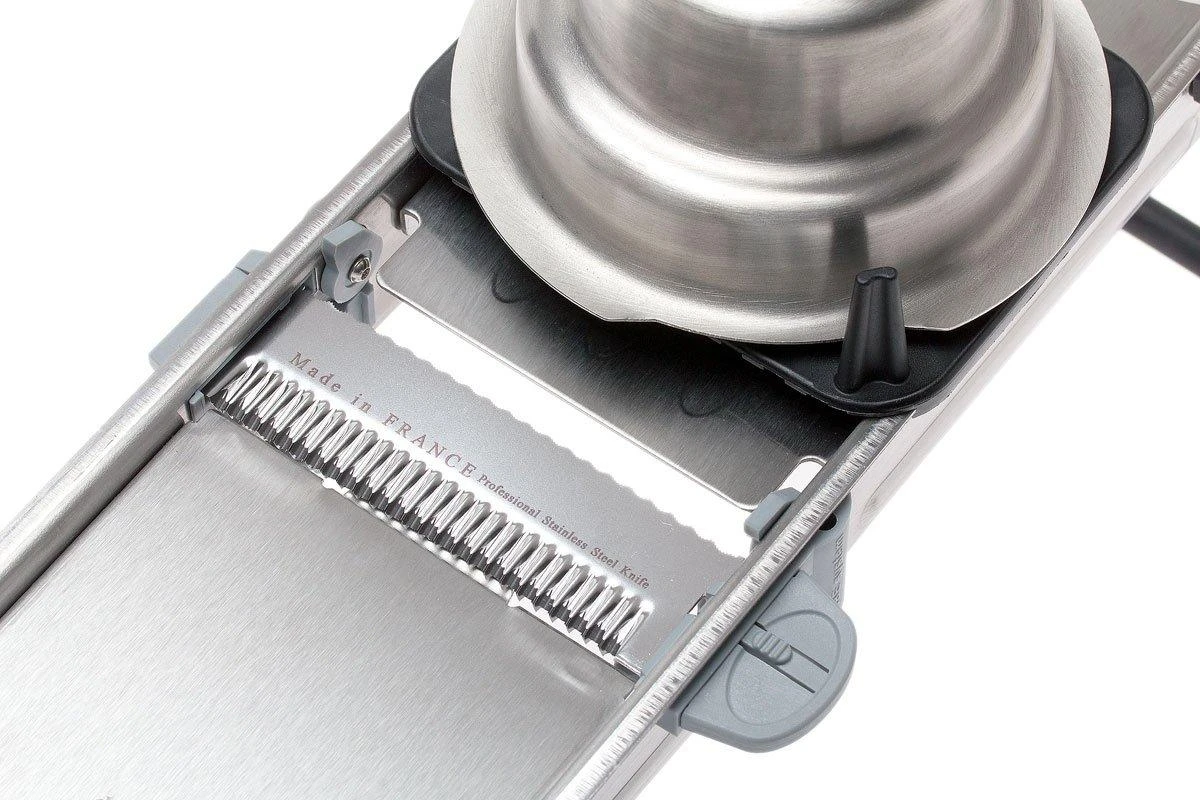 La mandolina Revolution de Buyer es resistente, robusta y versátil. El marco de acero inoxidable es extremadamente resistente y fácil de limpiar. Rodajas, gofres, cubos, tiras o diamante: esta mandolina puede hacerlo todo. La única limitación está en tu imaginación.