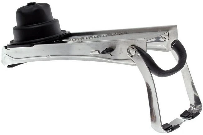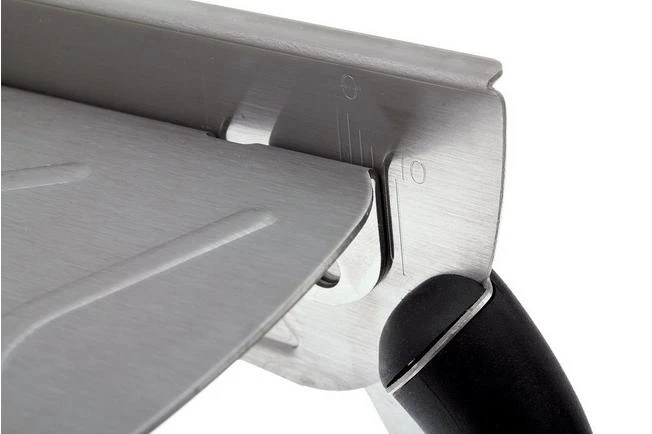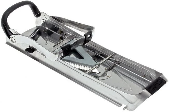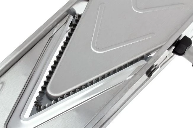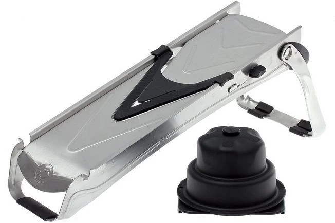 La mandolina Vantage de Buyer está desarrollada de acuerdo con los altos estándares de calidad de De Buyer, y es un verdadero tesoro para tu cocina. La mandolina se fabrica en Francia. El marco y las hojas de la mandolina son de acero inoxidable.