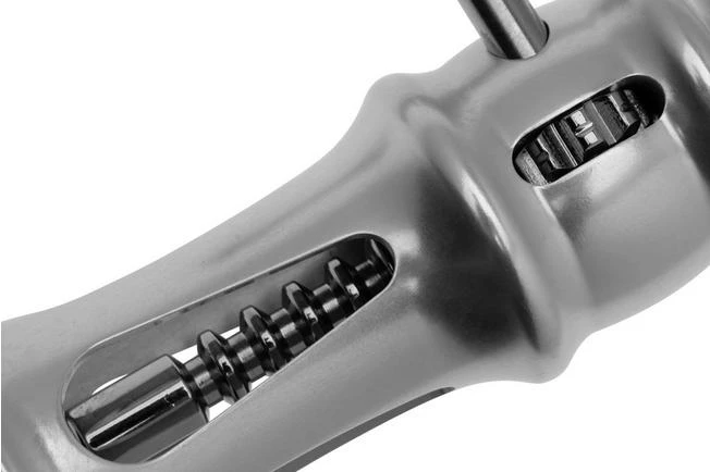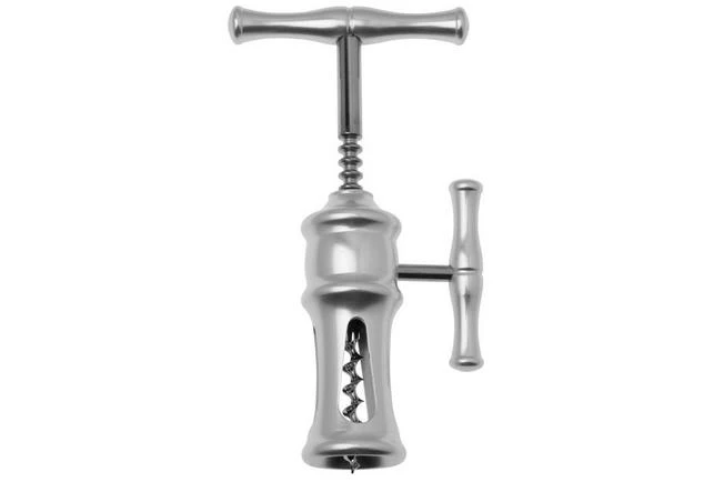 El sacacorchos Farfalli Bellagio O220.01 Aluminio Natural es una reinterpretación moderna de un sacacorchos del siglo XVIII con un mecanismo de cremallera. Es muy sencillo: coloca el sacacorchos contra la botella. Gire el asa superior para enroscar la espiral en el corcho. A continuación, gira el asa lateral para extraer el corcho de la botella sin esfuerzo.