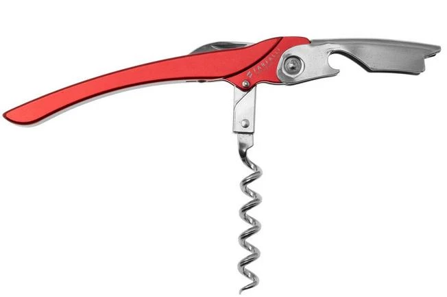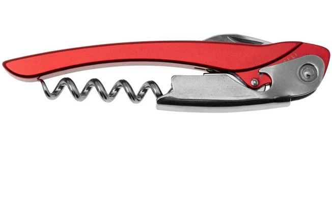 El Farfalli Line T309.05 Red Aluminium es un elegante y funcional cuchillo de sommelier italiano con una inteligente característica extra. Este cuchillo de sumiller incluye un abre botellas, un cortacápsulas y un sacacorchos con mecanismo de doble bisagra. Gracias a este mecanismo, el corcho se extrae siempre de forma perfectamente vertical, lo que reduce significativamente el riesgo de que se desmenuce o se rompa. El color rojo del mango de aluminio confiere a este cuchillo de sumiller un aspecto divertido y distintivo.