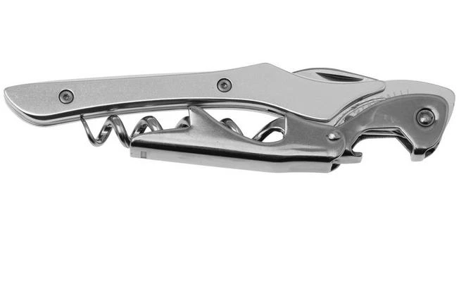 El Farfalli T10 Light T010.01 Aluminio Natural es un elegante y funcional cuchillo de sommelier italiano con mecanismo de palanca de dos pasos. Este cuchillo de sommelier incluye un abrebotellas, un cortacápsulas y un sacacorchos. La parte posterior acanalada del mango no sólo añade estilo, sino que también lo hace extra adherente. El color gris del mango de aluminio confiere a este cuchillo de sumiller un aspecto sutil y profesional.