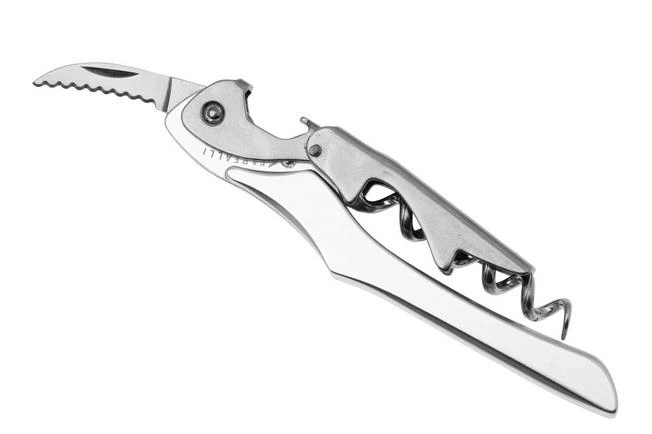 El Farfalli XL T209.01 Aluminio Natural es un elegante cuchillo de sommelier italiano con mango de una sola pieza de aluminio. Esto garantiza una construcción robusta, un peso ligero y un acabado elegante y estilizado. Este cuchillo de sommelier funciona mediante un mecanismo de palanca de dos etapas que permite extraer el corcho de la botella sin esfuerzo en dos sencillos pasos. Este cuchillo de sommelier incluye un abrebotellas, un cortacápsulas y un sacacorchos. El color gris del mango de aluminio confiere a este cuchillo de sumiller un aspecto sutil y profesional.