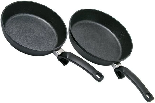 El juego de sartenes Adamant Classic de Fissler es un conjunto único y extraordinario de dos sartenes. Una con un diámetro de 24 cm y otra con un diámetro de 28 cm. El revestimiento antiadherente contiene carburo de silicio, por lo que es extremadamente robusto y resistente a los arañazos. ¿Has metido tus espátulas de silicona en el lavavajillas? Simplemente utiliza tus utensilios de cocina de metal en las sartenes Fissler Adamant.