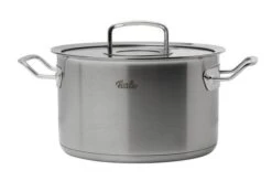 La olla Fissler Original Profi collection, 24 centímetros, es una olla extra alta con una capacidad de 6,3 litros. Las medidas de capacidad en el interior llegan hasta los 4 litros. La sartén viene con una tapa de cristal y metal.