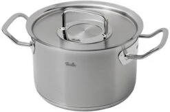 Esta olla de 20 cm de la colección Fissler Original Profi tiene un contenido de 3,9 litros. La capacidad del interior es de 3 litros. Viene con una tapa de metal.