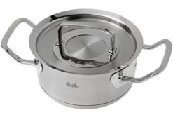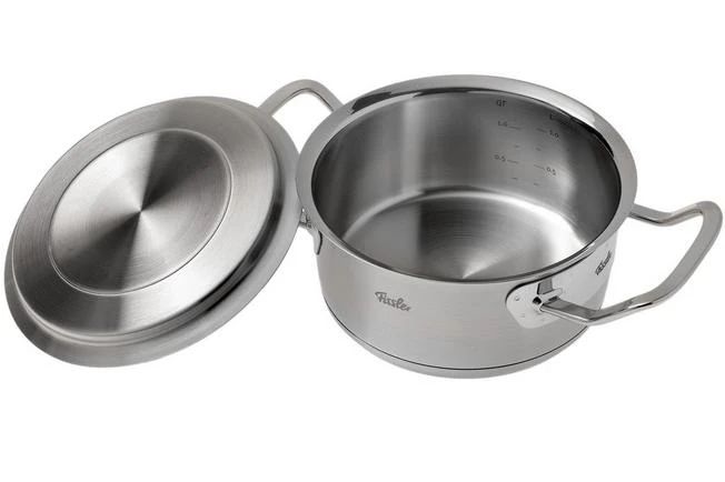 Esta cacerola Fissler Original Profi Collection tiene un diámetro de 16 cm y un contenido de 1,4 litros. La capacidad del interior de la sartén es de 1 litro. La sartén viene con una tapa de metal.