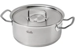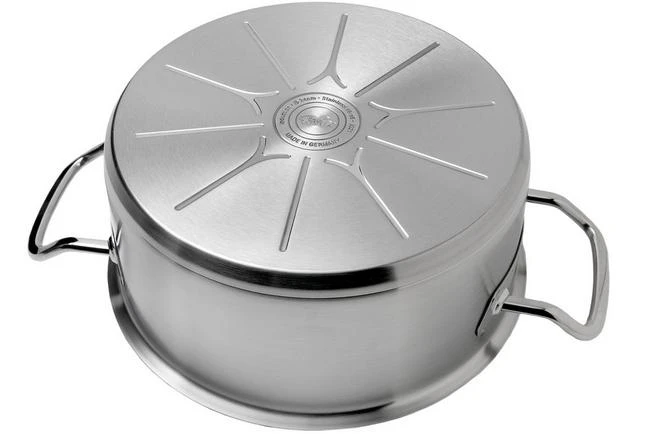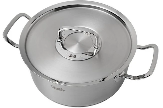 Esta cacerola Fissler de la Colección Original Profi tiene un diámetro de 24 cm y una capacidad de 4,6 litros. La capacidad del interior es de 3 litros. La sartén viene con una tapa de metal.