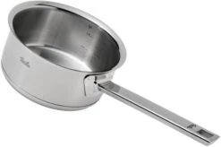 La cacerola Fissler Original Profi Collection tiene un diámetro de 16 cm. El contenido de la sartén es de 1,4 litros y la capacidad del interior de la sartén es de 1 litro. La sartén no incluye tapa.