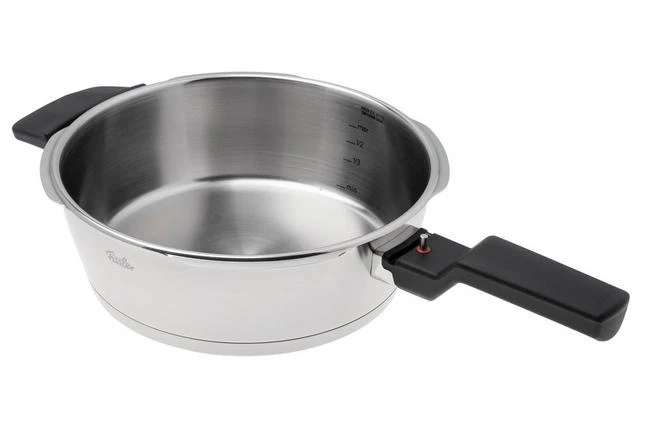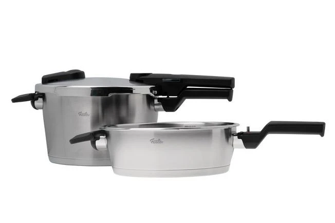 Este Juego de olla a presión Fissler Vitaquick de 2 piezas y 22 centímetros consta de dos ollas a presión con un diámetro de 22 cm y una capacidad de 4,5 litros y 2,5 litros. Perfecto para comidas de 3 a 5 personas y, gracias a su pequeño hueco, también es ideal para preparar o recalentar rápidamente platos más pequeños.