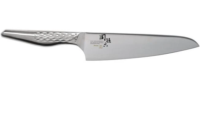 Este cuchillo de chef KAI Seki Magoroku Shoso de 18 cm es perfecto para cortar verduras, carne y pescado. Es un verdadero todoterreno. Como el cuchillo japonés está completamente hecho de acero inoxidable y no tiene ninguna abertura, las bacterias no tienen ninguna posibilidad. Además del aspecto higiénico, este cuchillo se distingue por su excelente ergonomía y su afilado inigualable gracias a la innovadora tecnología de afilado.