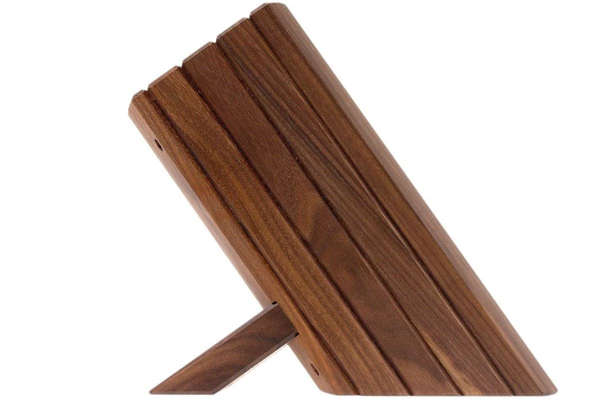 Este soporte de cuchillos Kai Shun es perfecto para guardar tus cuchillos de forma segura. El soporte de cuchillos de nogal ofrece espacio para un máximo de ocho cuchillos. Robusto, con un bonito acabado y un verdadero punto de atracción en tu cocina. Además, el soporte de cuchillos es completamente desmontable, lo que facilita su limpieza.