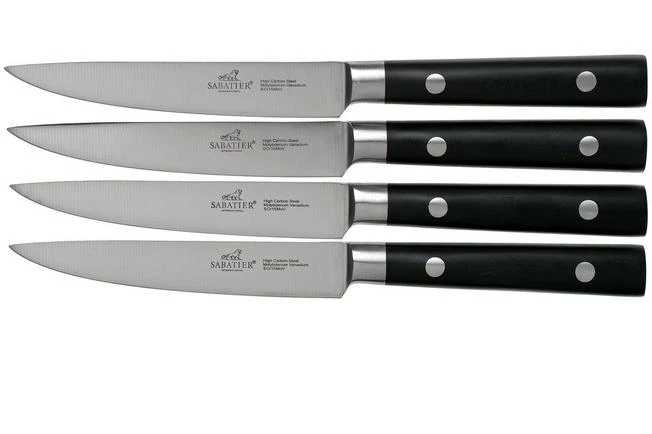 El juego de cuchillos para carne Lion Sabatier Leonys contiene cuatro elegantes cuchillos para carne. Los cuchillos tienen un diseño tradicional, pero están fabricados con materiales modernos.