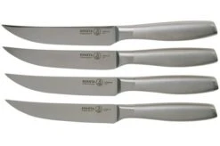 El Messermeister Avanta silver es un elegante juego con cuatro cuchillos para carne. Los cuchillos para carne son indispensables para los verdaderos amantes de la carne. Cortan filetes u otros trozos de carne sin desgarrarlos. Además, un elegante cuchillo para carne será la pieza central de tu mesa y una excelente manera de impresionar a tus invitados.