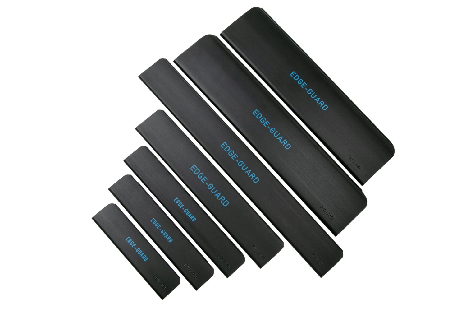 Este Juego de protectores de cuchillos de 7 piezas Messermeister Edge-Guard te permite transportar y guardar con seguridad tus cuchillos de cocina Messermeister. No querrás que choquen entre sí en un cajón de la cocina y acaben con los filos dañados. Si te vas de acampada y te llevas un cuchillo de cocina, un protector de cuchillos también puede ser muy útil.