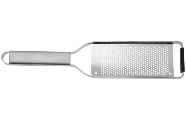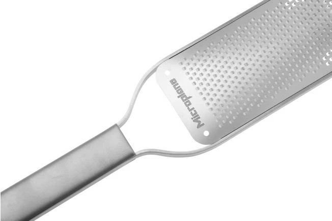 Este rallador Microplane Professional es muy afilado y tiene un acabado de lujo. La estructura de acero tiene un mango de acero inoxidable.
