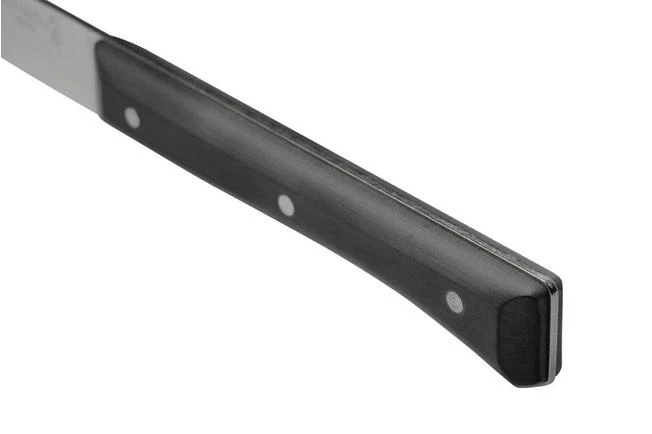 La Opinel Facette es una serie de cuchillos fabricados en Francia. Está disponible en una gran variedad de colores. La caja Opinel facette pizarra microdentada consta de cuatro cuchillos de mesa con hoja microdentada de acero inoxidable de espiga completa y mango de papel prensado ecológico. Los mangos son de color gris.