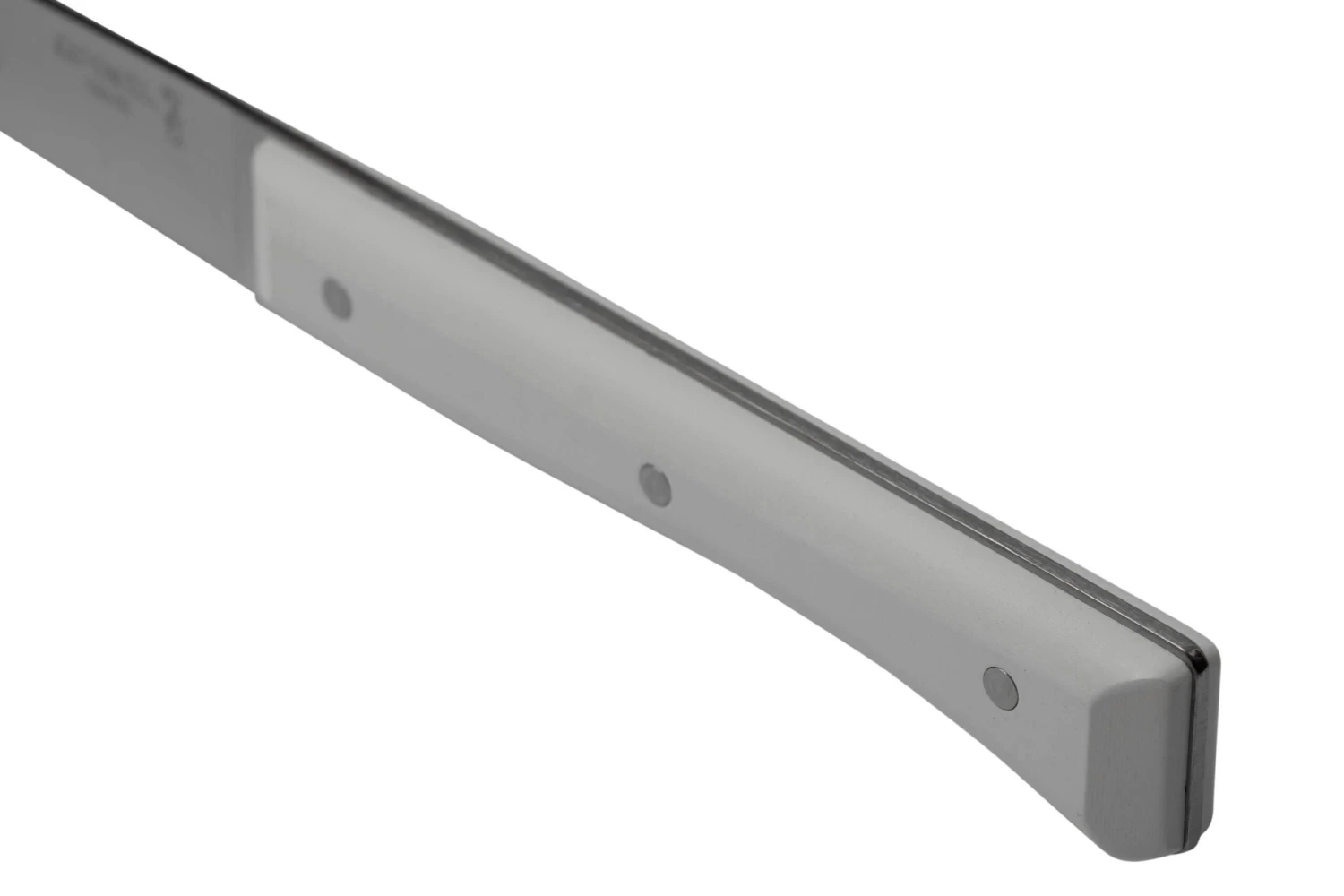 La Opinel Facette es una serie de cuchillos fabricados en Francia. Está disponible en una gran variedad de colores. La caja blanca Opinel Facette consta de cuatro cuchillos de mesa con hoja de acero inoxidable de espiga completa y mango de madera de fresno natural.