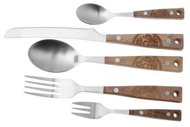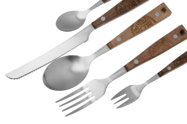 El juego de cubiertos de 5 piezas Petromax Camping Cutlery Set es indispensable para todas tus aventuras al aire libre. Tanto si te vas de acampada con la autocaravana como con la mochila al bosque, este juego de cubiertos es ideal por sus funciones, material y aspecto.