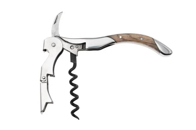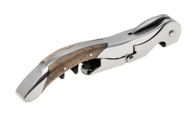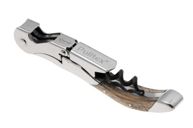 El Pulltex Pulltap’s Toledo Oak 109-160-00 es un popular sacacorchos de camarero de la serie Pulltex Pulltap’s. Esta versión cuenta con partes del mango fabricadas en roble. Gracias a la doble palanca de este sacacorchos, se quitan los corchos en dos sencillos pasos, reduciendo la posibilidad de que se rompa el corcho. Los sacacorchos Pulltex Pulltap’s también incorporan cortadores de lámina dentados. Además de algunas partes del mango hechas de roble, el mango también está hecho de zamak, una aleación de zinc, aluminio, magnesio y cobre. La espiral tiene un revestimiento de teflón que le permite atravesar el corcho suavemente sin romperlo. La palanca de acero tiene un recubrimiento de níquel pulido de alto brillo. El sacacorchos viene en una funda de cuero.