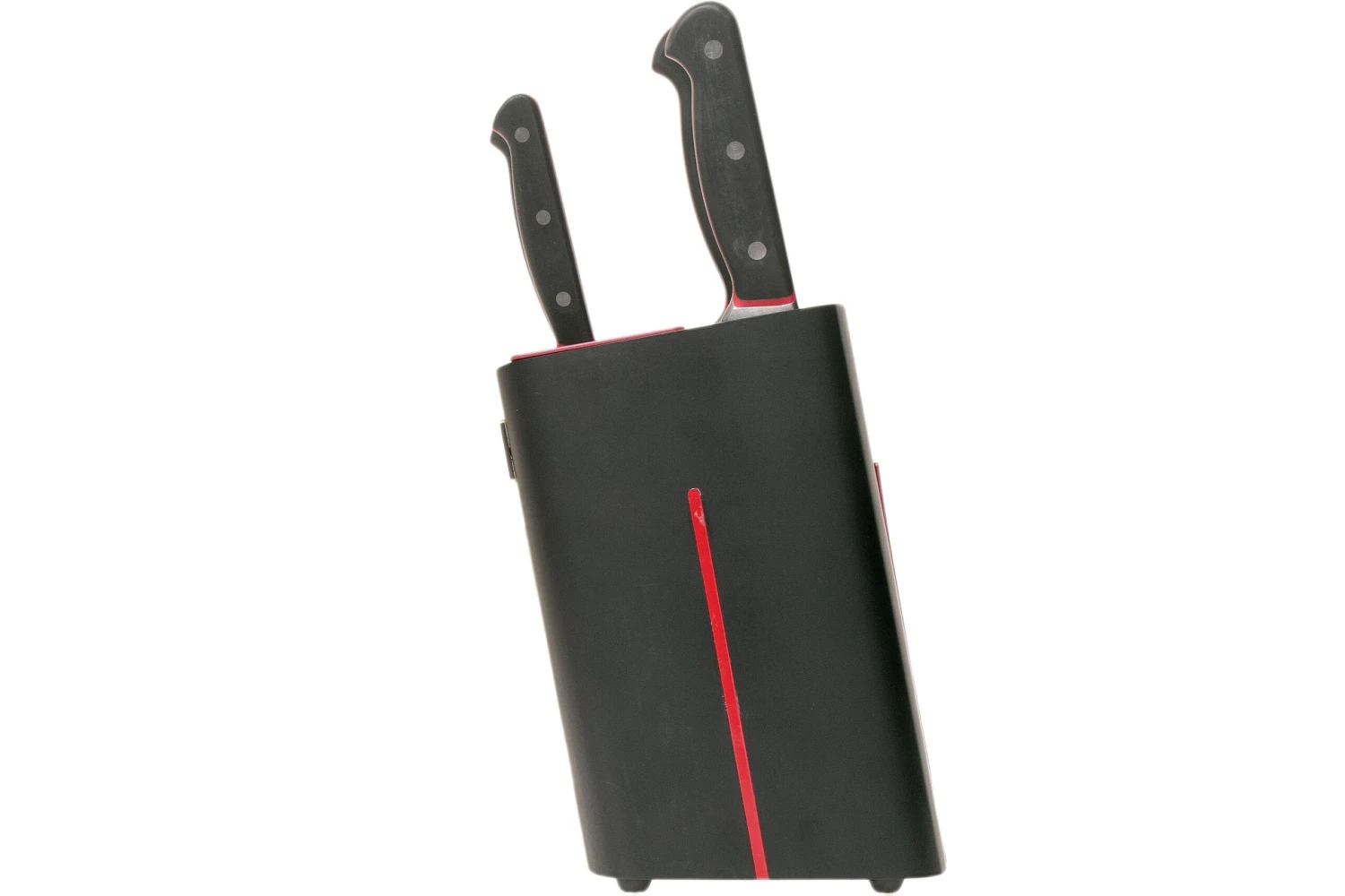 Este juego de cuchillos Richardson Sheffield Velocity de 5 piezas que incluye un bloque de cuchillos se compone de un cuchillo puntilla, un cuchillo multiusos, un cuchillo de chef, un cuchillo de trinchar y un cuchillo de pan. Este juego de cuchillos es un excelente ejemplo del diseño único e innovador por el que es famoso Richardson sheffield. El bloque se ha mejorado con un afilador de cuchillos integrado.