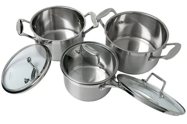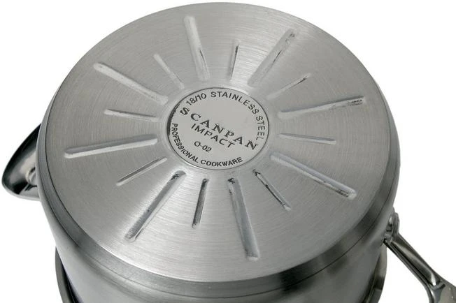 Este juego de ollas de tres piezas SCANPAN Impact se compone de dos ollas y una cacerola. Las cacerolas pueden utilizarse en todas las placas de cocción, están realzadas con marcas de capacidad y están fabricadas en acero inoxidable 18/10 de primera calidad. Un juego de ollas que podrás disfrutar durante años o incluso décadas.