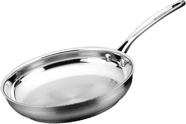 Esta sartén SCANPAN Impact está diseñada para durar años. La elección de los materiales y la construcción garantizan una vida útil óptima. La base gruesa garantiza una transferencia de calor óptima y hace que las sartenes sean adecuadas para todas las fuentes de calor. Si buscas sartenes para placas de inducción o para usar en el horno, las sartenes SCANPAN Impact son una excelente opción. El borde de vertido en la parte superior también es un placer de usar. Permite verter líquidos fácilmente, sin ensuciar.