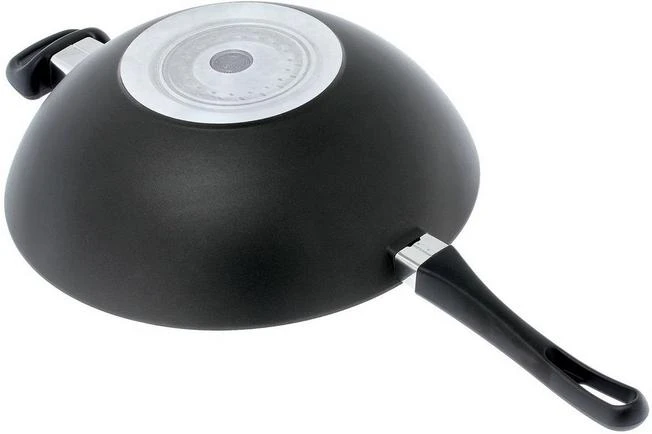 Este wok SCANPAN Classic es increíble de usar y muy completo en el momento de la entrega. La sartén está hecha de aluminio fundido a presión. El aluminio fundido se presiona en un molde bajo 250 toneladas de presión para crear una sartén muy estable y resistente. Esto significa que es casi imposible doblar la sartén. Por ello, también recibes una garantía de por vida para que la sartén no se doble.