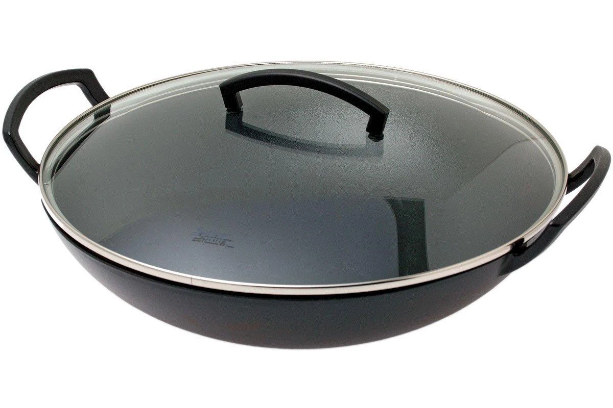 Esta sartén wok de 35 cm con tapa de cristal de Spring te ofrece una alta calidad combinada con la máxima facilidad de uso. Esta sartén wok de Spring está hecha de hierro fundido sólido. El hierro fundido es conocido por su excelente retención del calor y su distribución gradual y uniforme. Una vez caliente, se puede bajar la fuente de calor. Estas propiedades hacen que las sartenes de hierro fundido puedan utilizarse de diversas maneras. Son perfectas para saltear, pero también son ideales para asar, guisar o hacer deliciosas salsas. Gracias al hierro fundido y a la base plana, este wok es apto para cualquier fuente de calor, incluida la inducción. Una verdadera ventaja para tu cocina y tu mesa de comedor.
