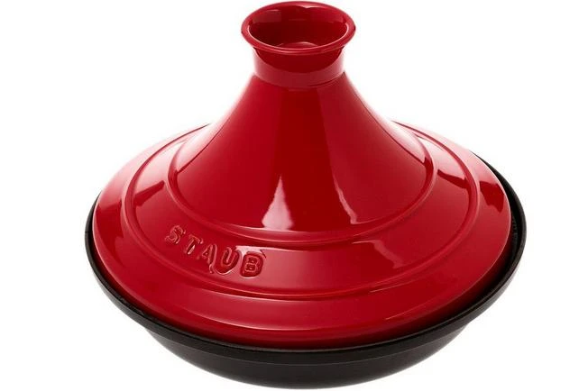 La base de este tagine Staub está hecha de hierro fundido sólido. El hierro fundido es conocido por su excelente retención del calor y su distribución gradual y uniforme. Una vez caliente se puede bajar el nivel de calor. Lo mismo ocurre a revés: la sartén también se mantiene fría durante más tiempo. Puedes utilizarla para mantener tus platos fríos fuera de la nevera en un caluroso día de verano. Con estas propiedades, las sartenes de hierro fundido son perfectas para cocinar, asar y guisar.
