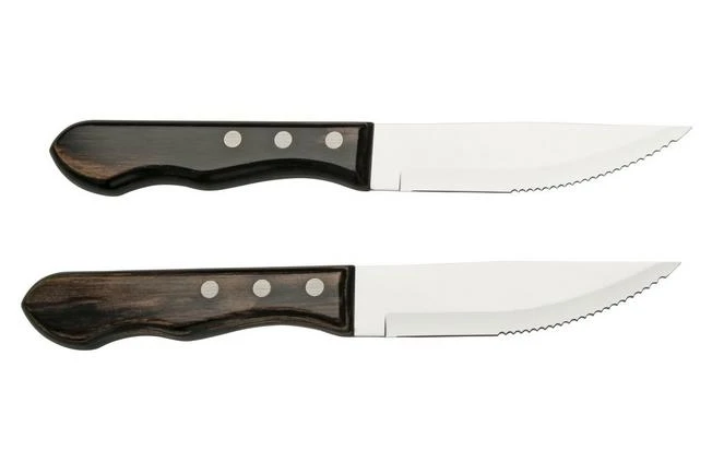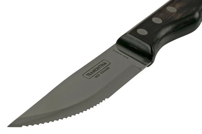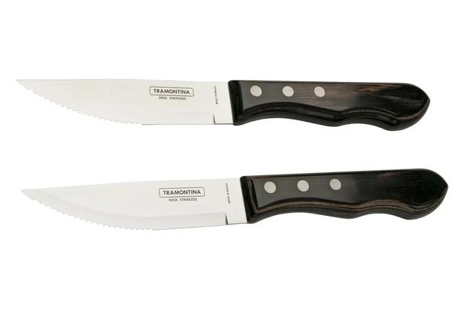 Este jeugo de cuchillos para carne Churrasco Jumbo de Tramontina es un juego económico y práctico, compuesto por dos cuchillos para carne de gran tamaño. Perfecto para usar en restaurantes, en casa o durante una buena barbacoa.