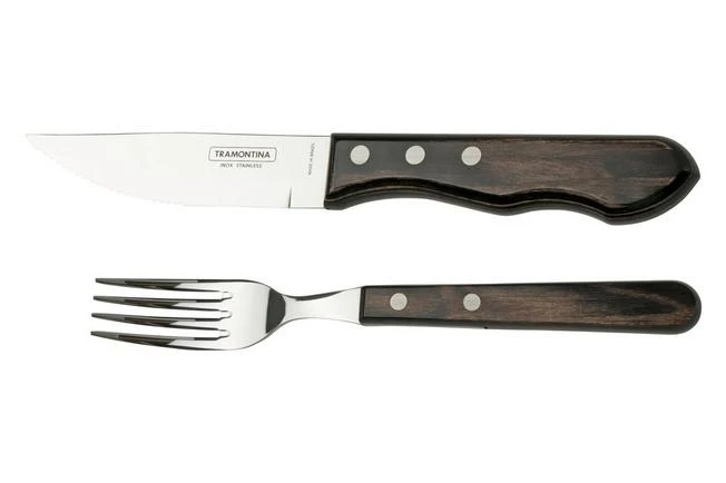 Este juego de cubiertos para carne de Churrasco Jumbo de 2 piezas es un juego asequible y práctico, compuesto por un cuchillo de churrasco grande y un tenedor de mesa a juego. Perfecto para usar en restaurantes, en casa o durante una buena barbacoa.