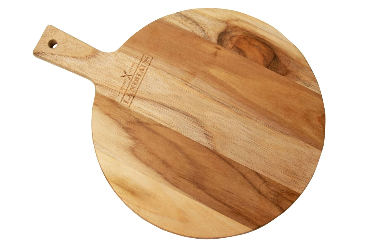 La tabla de cortar Tramontina Landhaus teca 40 x 30 cm es ideal para cortar trozos de pan, carne y verduras. Además, esta impresionante tabla de cortar de teca redonda puede utilizarse también como plato o tabla de servir.