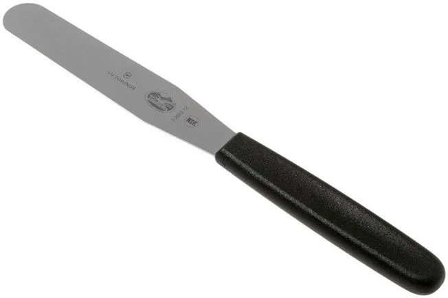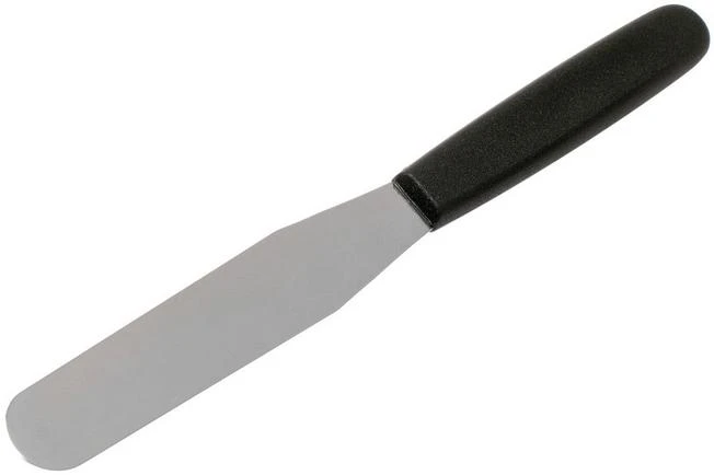 Esta pequeña espátula Victorinox con su hoja de 12 cm de largo, también se llama espátula. Esta espátula es estupenda a la hora de cubrir un pastel. O utilizar la espátula al servir el pastel. Por supuesto, también se puede utilizar para deslizar los ingredientes (pequeños) en la sartén. Una vez que forme parte de tu cocina, la utilizarás a menudo.