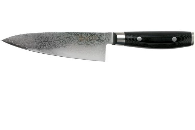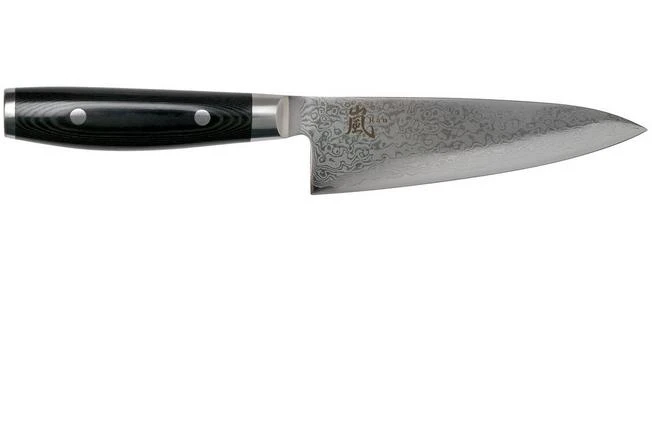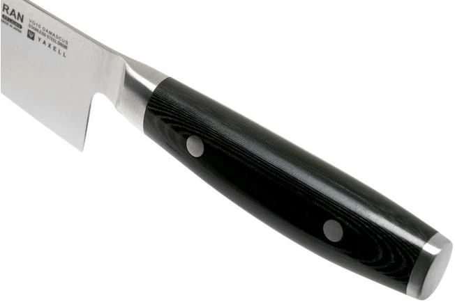 El cuchillo de chef Yaxell Ran de 15,5 cm es un pequeño y elegante cuchillo de cocina japonés. Debido a su pequeña hoja, el cuchillo es muy fácil de usar y ligero. Como tal, tiene mucho control al cortar verduras, frutas, carne o hierbas. Es ideal si cree que un cuchillo de chef normal es demasiado grande.