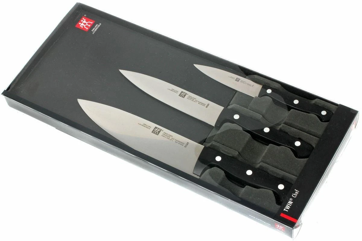 El Juego de cuchillos Zwilling Twin Chef de 3 piezas es un práctico y económico juego de cuchillos para cualquier trabajo en la cocina. Desde cortar carne o verduras hasta picar hierbas o ajo.